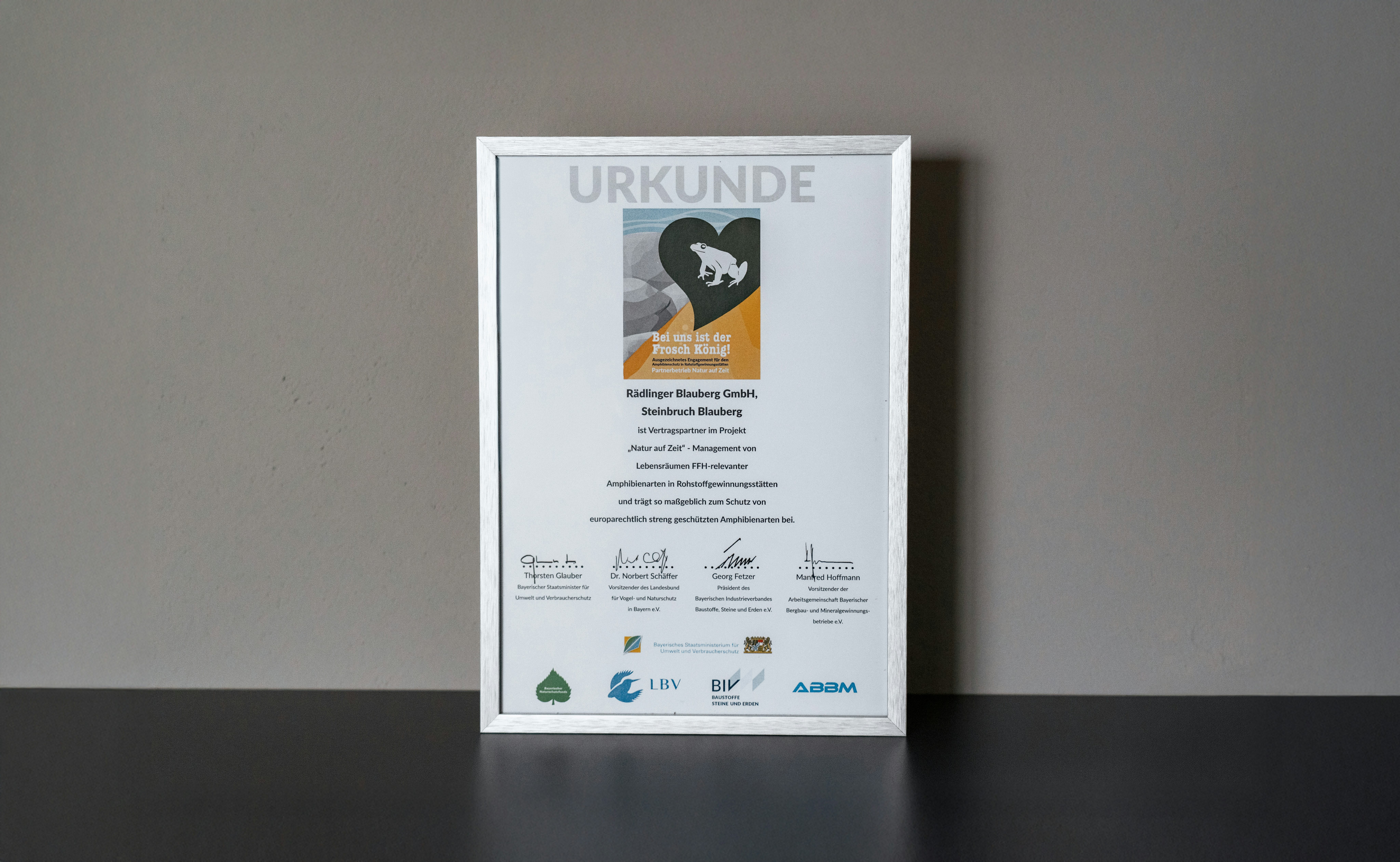 Letzte Woche durften wir in Ingolstadt eine besondere Auszeichnung entgegennehmen: Der LBV (Landesbund für Vogel- und Naturschutz) und der BIV (Bayerische Industrieverband Baustoffe, Steine und Erden) würdigten unser Engagement im Rahmen des Projekts „Natur auf Zeit“.